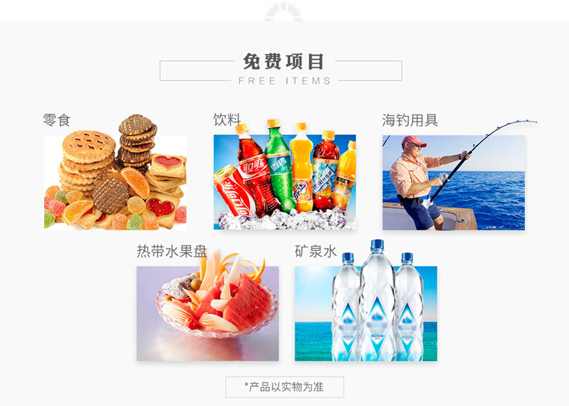 | 標(biāo)配項(xiàng)目: | 水果、漁具、零食、飲料 | 影音設(shè)備: | DVD、CD、USB音樂(lè) | ||||